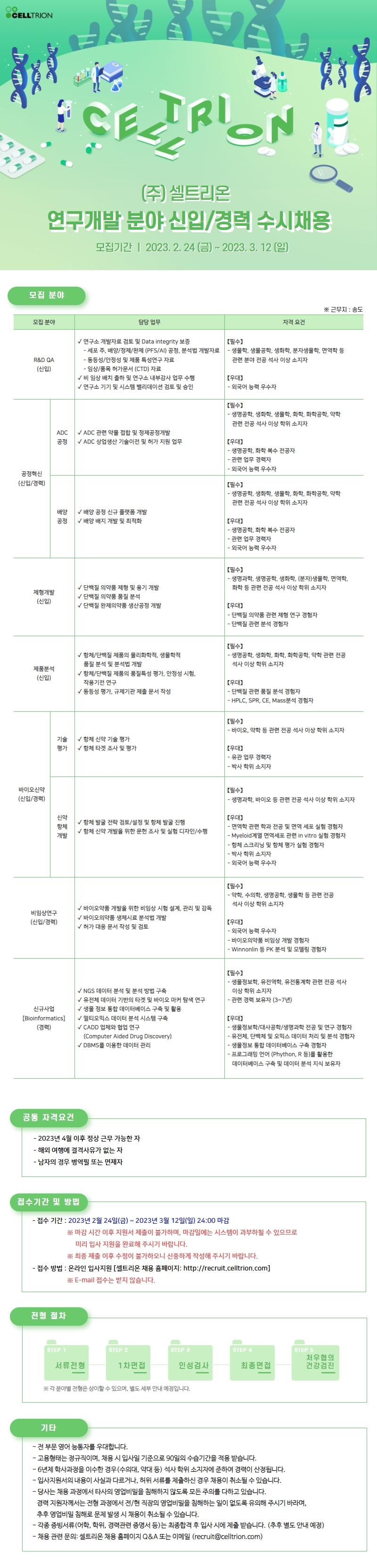 | [쓰리빌리언] 2023년 02월, 생물정보학, 연구/개발부문 (강남) (1) | 2023.02.28 |