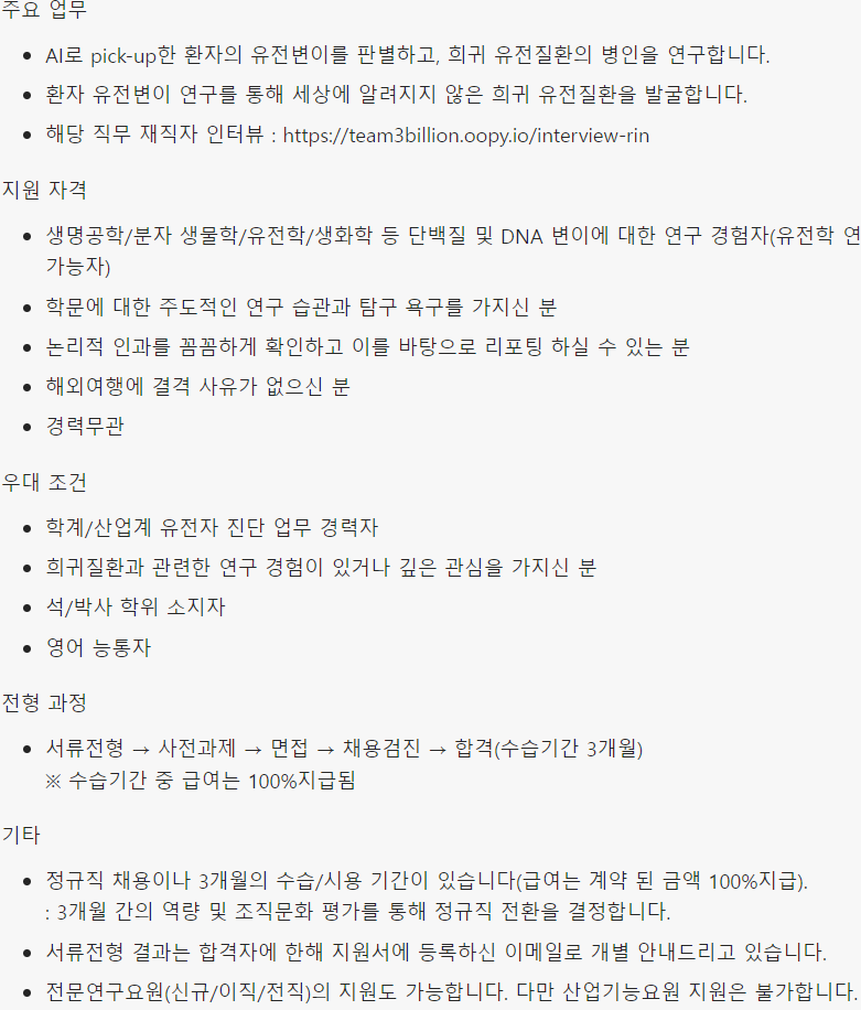 [쓰리빌리언] 2023년 02월, 생물정보학, 연구/개발부문 (강남)