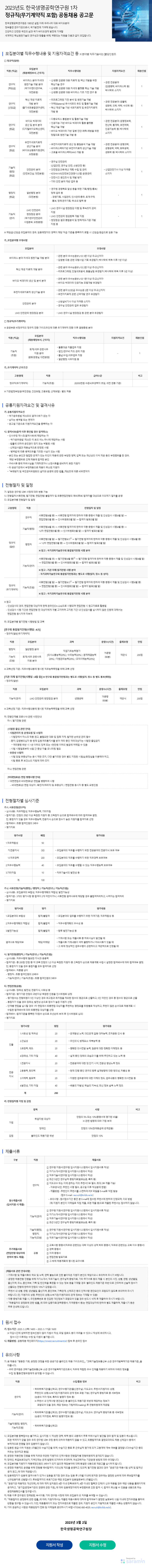 | [국가과학기술연구회] 2023년, 박사후 연수생 상시 채용, 정출연 맞춤형 인력양성사업 (상이) (0) | 2023.02.28 |