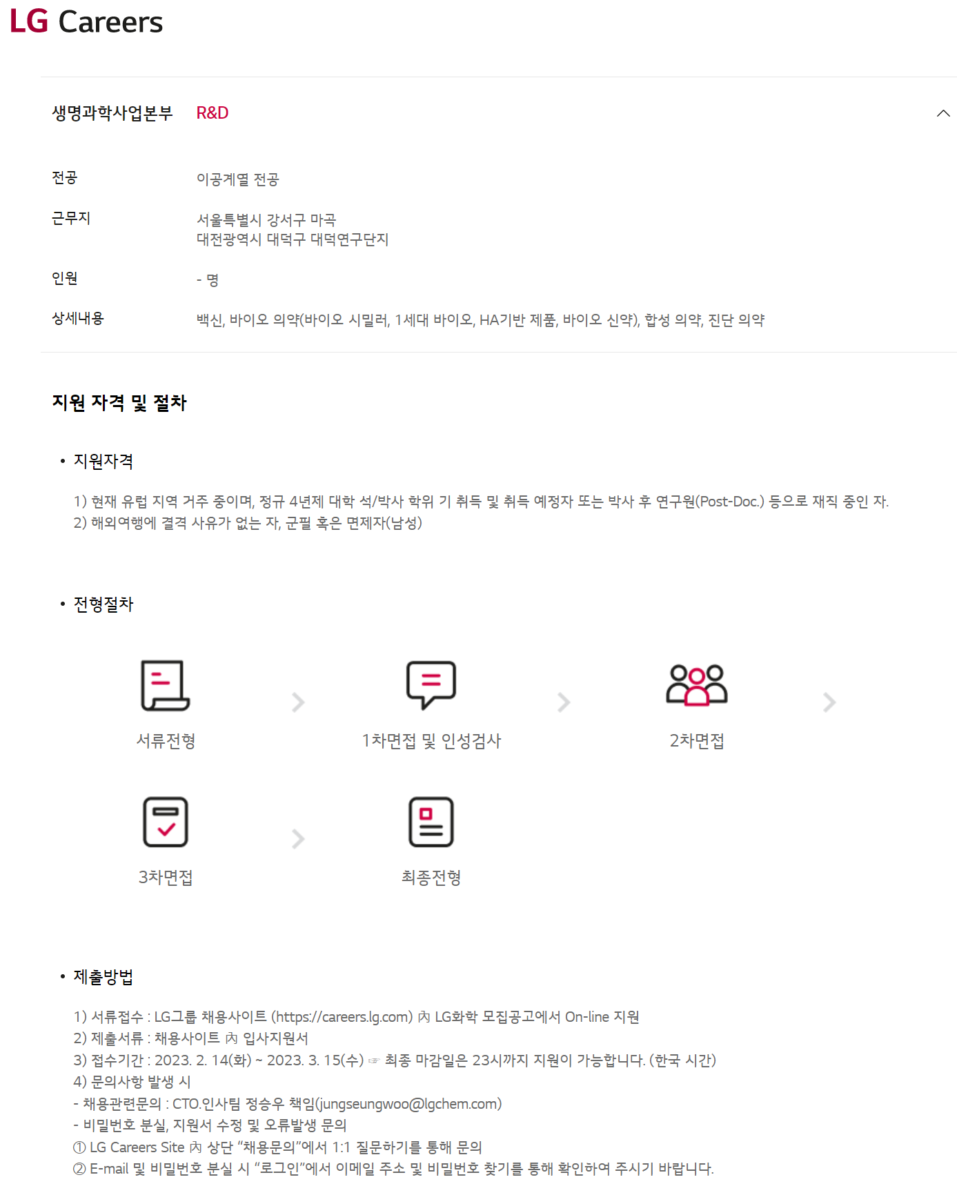 근무지(시작일): 서울특별시 강서구 마곡/대전광역시 대덕구 대덕연구단지 (2023.04.01)